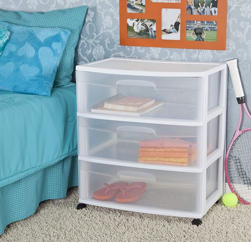 Sterilite 3 Drawer Wide Cart, White